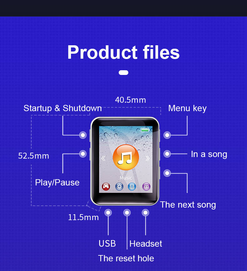 Package Included: 1 * MP3 Music Player 1 * USB Cable 1 * Instruction 1 * Wired headset