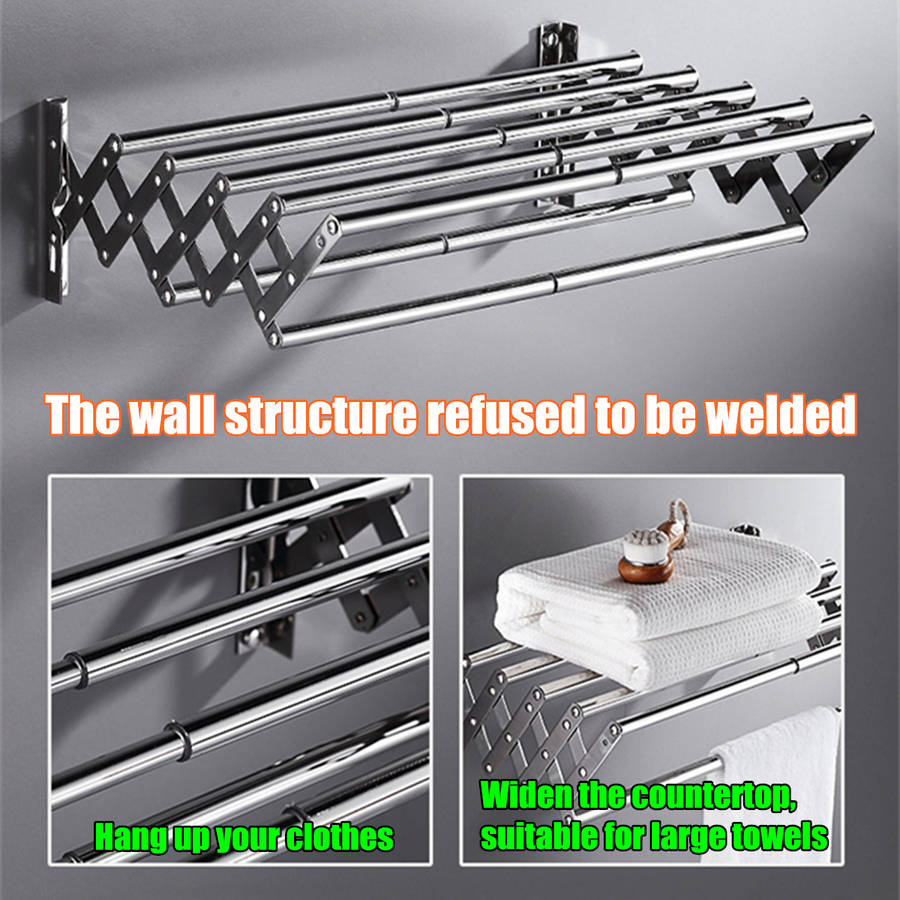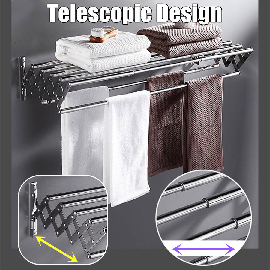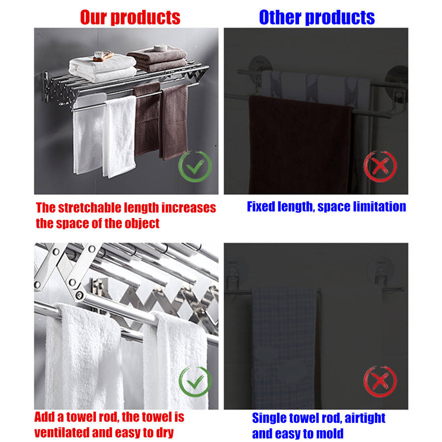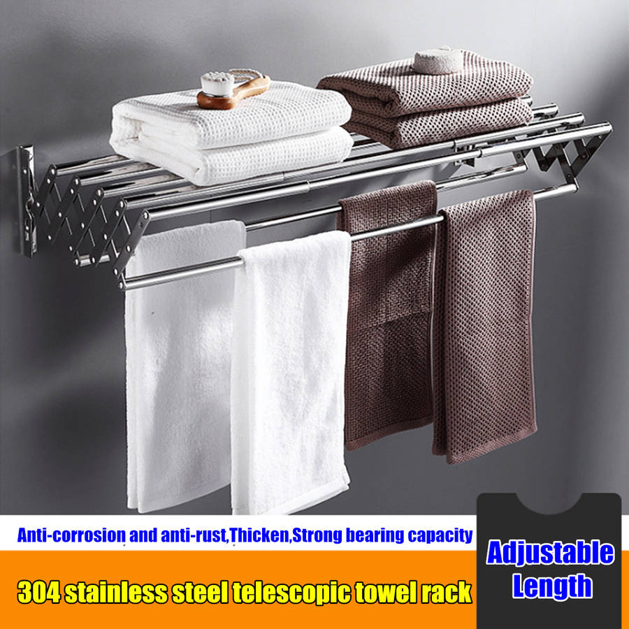 Bakeey Telescopic Perforated Towel Rack Stainless Steel Wall Mount Expandable Towe... (TYPE: DOUBLE)