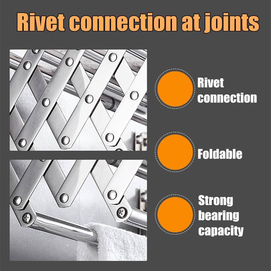 Features: 1.Telescopic design, Adjustable width and length 2. 304 Stainless steel material, not easy to rust 3. Strong bearing capacity, stable, prevent falling off, breaking 4. Solid base, durable and strong 5.The wall structure refused to be welded, rivet connection
