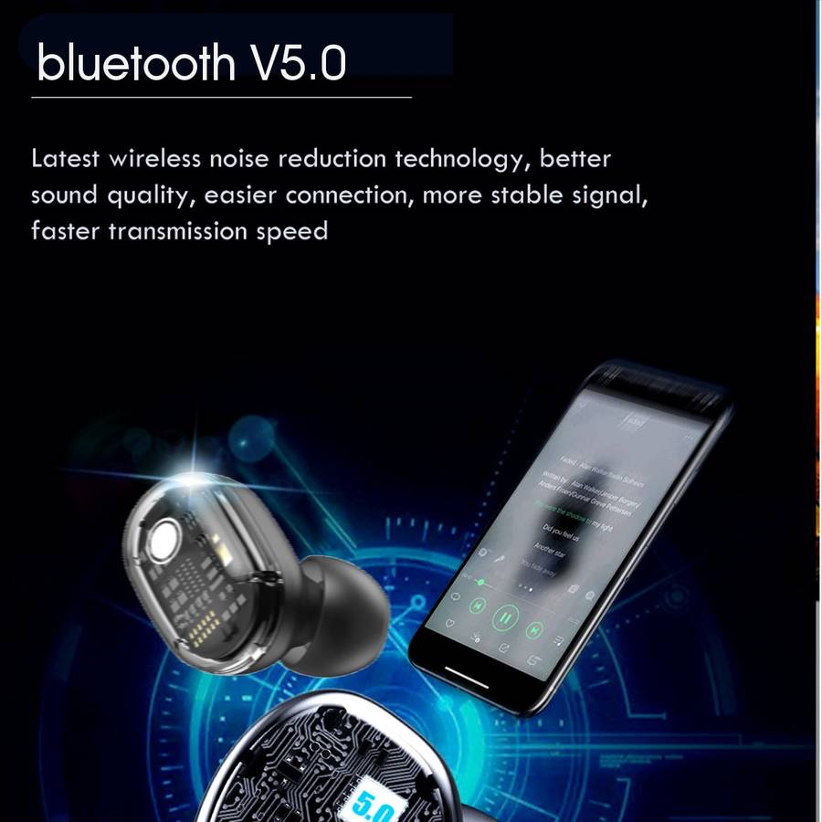 Feature: - HeadphonesTake out and Connect Automatic boot-up connection. - Waterproof Multi-process design earphone head body, effective preventing sweat damage to components; flushing with water, no fear of drizzle. - CVC8.0 Intelligent Noise Reduction - bluetooth 5.0 With the 5.0 version of the bluetooth chip, the call effect, compatibility functionality and other aspects have been significantly improved, no delay. - In-ear Painless Design Fit the ear canal, comfortable and feelless, sports can not afford to lose. - LED Electricity Display Screen Add a new power display, charging cabin, Headphone Power at a glance. - 3600mAh Charging Box Put it in and you can charge it automatically, Fully power off automatically - Bilateral High Definition Telephone Intelligent de-noising of telephone calls enables you to chat freely all the way. Clear calls are readily available. Specification: Headphone Material: Metal Material Bluetooth Version: V5.0 Working Distance: Connection within 10 meters Charging box capacity: 3600 mAh Auto boot: support Automatic Matching: Support Full headphone power: 1.5 hours Single ear battery life: 8 hours Music time: about 32 hours Noise reduction version: CVC8.0 Audio decoding: SBC Working hours: About 6 hours (headphones) + 24 hours (charging box) Sensitivity: 98dB Rated input: DC 5V 60mA (headphones) DC 5V 500mA (charge box) Package Included: 2x Earphones 1x Charging Box 1x Manual