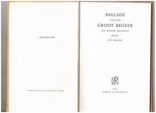 | Title | Ballade van die groot Begeer en ander gedigte |