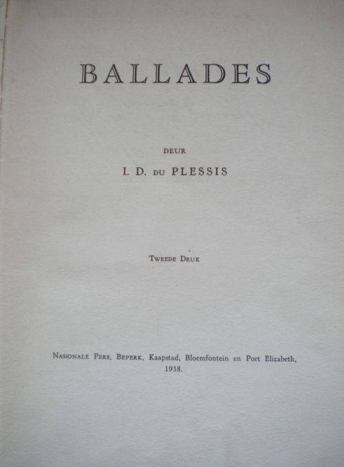 Ballades deur ID du Plessis. Redelike kondisie met heelwat potlood aantekeninge.
