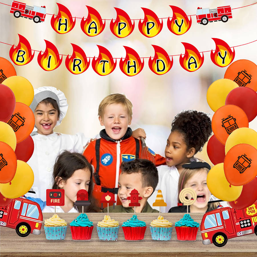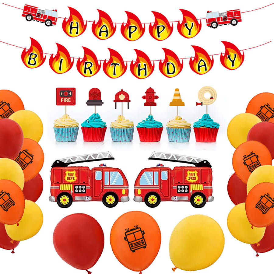 Fire Truck Party Decoration, Fireman Firefighter Birthday Party Banner Balloon Decoration