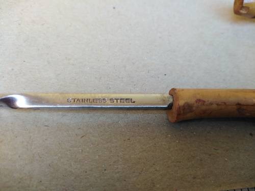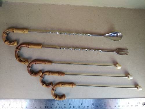 Vintage Real Bamboo Handle Stainless Steel Flatware Set of 5 elongated . Mixing spoon, bar bistro drink utensil flatware