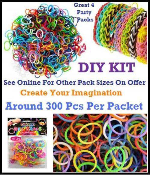 This offer is for 3 Packs of Colourful DIY Bands for Bracelet Making the latest Craze in Teenage Wear. Each Pack contains around 300 Bands each so offer is for 3 x 300 pieces. Needle for threading and clips are provided in each pack this is idea for kid’s parties and great to fill party packs. Teenagers are going crazy over the latest fashion wear