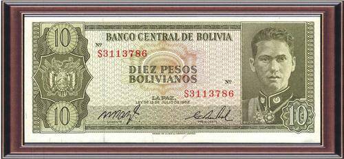 Banknotes A-Z  Bolvia   P154   10 Pesos    Unc