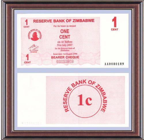 ZW65 (Reference number from the definitive catalogue entitled Dr Heinz Wirz and Victor Hasson on the Bank Notes and Emergency Forms of Zimbabwe.)