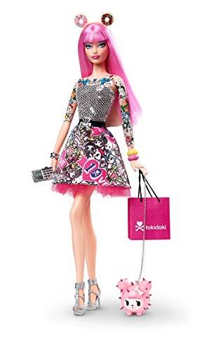 Always at the forefront of cutting-edge fashion, Barbie collaborates with whimsical lifestyle brand, Tokidoki in celebration of the brand's 10th anniversary. Barbie is ready to shop all day and party all night in a shimmering silvery sequin top, iconic Tokidoki print skirt with bright tulle underlayer, stylish heels and bold, colorful jewelry. Her sleek blonde hair is dyed bright pink at the tips and held in a fun headband. Other accessories include a shopping bag and her very own pink cactus pet on a leash. Each doll sold separately. Colors and decorations may vary.100% Toy Imported Second series of Barbie Tokidoki dolls Collaboration to celebrate Tokidoki's 10th anniversary Doll wears a silvery sequined top with iconic print skirt and whimsical accessories Includes shopping bag and pink cactus pet on leash