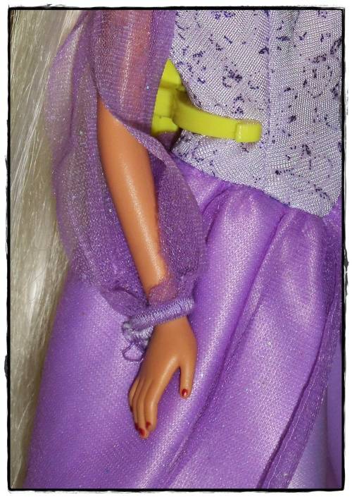 Up for auction is a beautiful, previously loved Barbie doll made by Mattel. She is wearing a gorgeous purple, genuine Barbie princess dress, but unfortunately no shoes. Please note that both of the sleeves was torn right in the middle (see pictures), but it won't affect playtime. She also have painted fingernails. Beautiful, soft facial make-up, blue eyes and pink lips. She has a bellybutton bodyshape, ballerina arms and bendable legs. Her extra long blonde hair is super soft. Sorry, but no extra clothing or accessories are included. Check out my other listings - you just might find the doll you're looking for! Contact me with any questions you have regarding this doll.