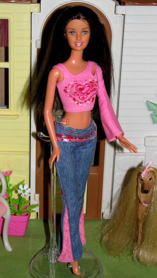 Teresa. Barbie has shiny dark brown hair, green eyes & soft pink lips.