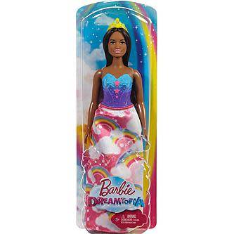 Barbie Dreamtopia princess doll is ready to rule the magical kingdom of Rainbow Cove! She's dressed for any royal occasion or fairy-tale adventure in a brightly Coloured outfit with a removable skirt, pretty tiara and matching shoes. Barbie doll is inspired by the land of Rainbow Cove and so is her Colourful look.
