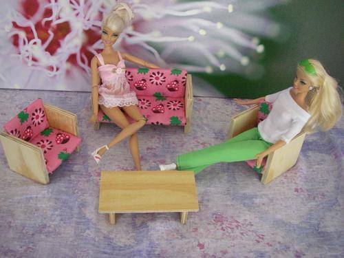 This unit consists of a double seater and 2 single couches with foam seats covered in pink material with flowers and ladybugs. Included is a matching coffee table. This unit makes a stunning gift which is great to play with. A popular seller.