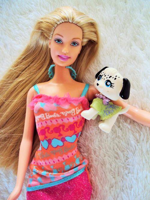 Barbie with her own cutest puppy wearing a little coat - Mattel pre-loved goodcond