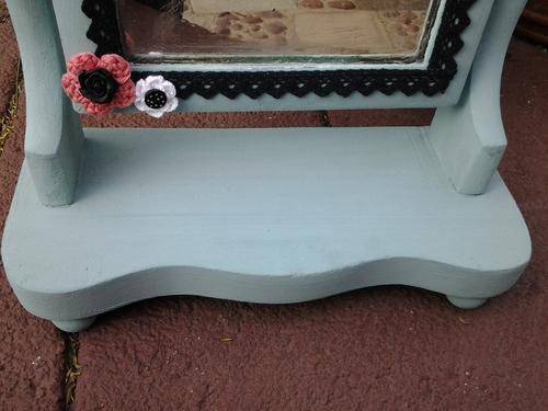 This colour is bright and bold and this piece is decorated in a very crafty Shabby chic classic unique way. Full of unique chicness.......With some shabby-ness!