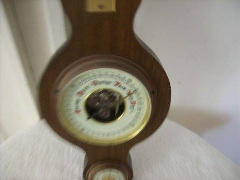 Lovely barometer includes temperature and relative hygro gauge   in good working condition, measures 380mm long.