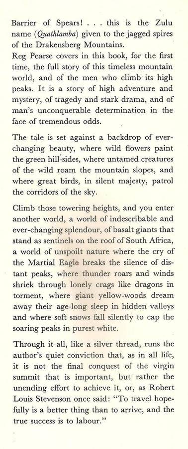 Barrier of Spears - Drama of the Drakensberg by: R. O Pearse **Pristine condition**
