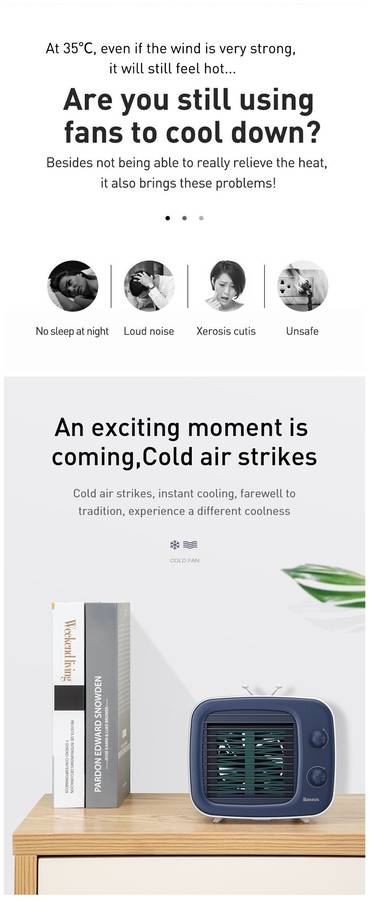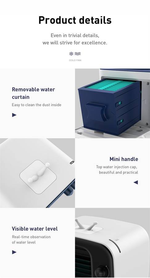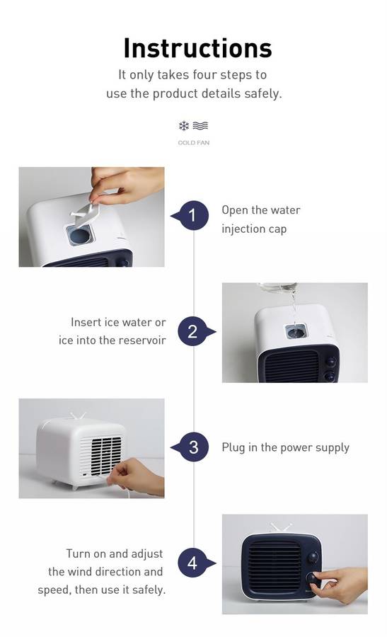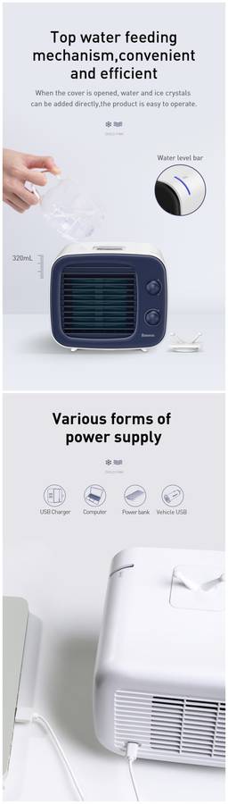 | Product Details | Materia: ABS Rated power: 4.2W Rated voltage: DC 5V 0.84A Fan speed: 3000 RMP Water tank capacity: 320mL Product size:180mm*164mm*158mm |