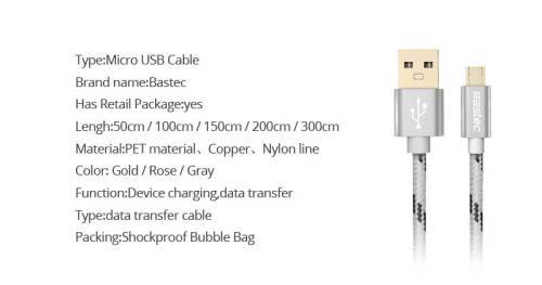 Bastec Original Micro USB Cable with Metal Shell Gold-plated Connector Braided Wire for Samsung Phon