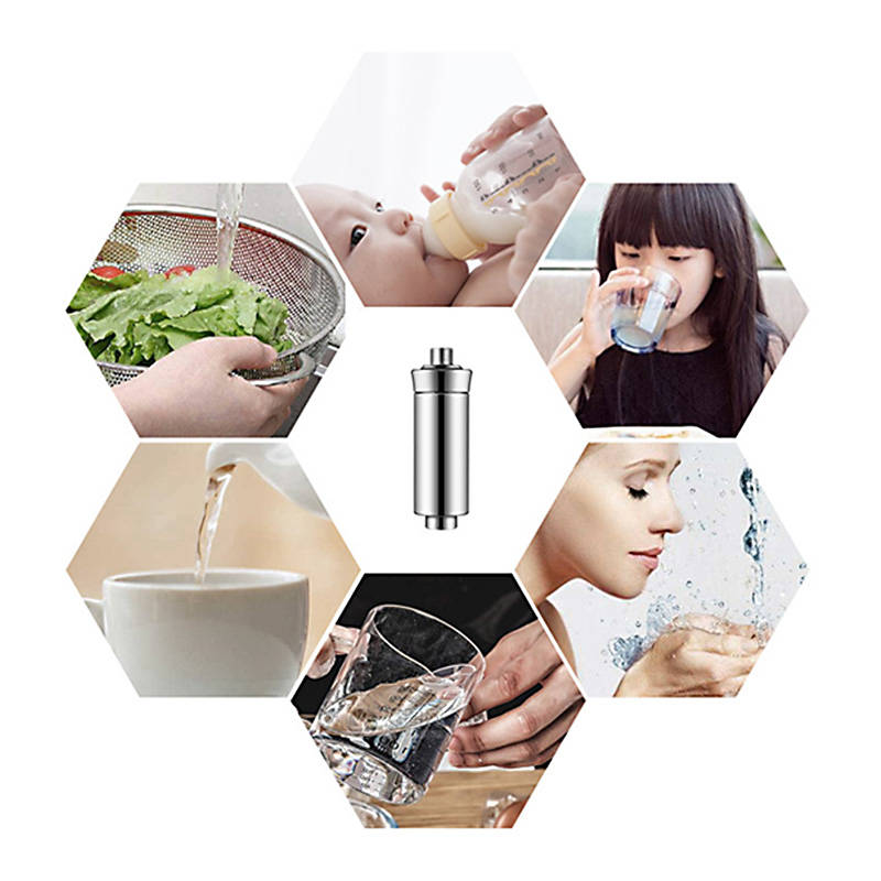 null Specifications: Name: 15 Stage Bath Water Purifier Shower Filtration Purifier Color: Sliver Material: Acrylonitrile Butadiene Styrene(ABS) / Polypropylene(PP) ( Please leave a message tell us which material you want,thank you!!! ) Temperature Range: 4 -80 (ᆪC) Working Principle: Activated Carbon Filter Element: Composite Filter Filtration Accuracy: 1-5 Micron Clean Water Flow: 5L/min Work Pressure: a0.1-0.4MPa Applicable: Shower, Washstand Water Quality Function: Washing And Bathing Filter Life: 50000L (about 4 months) Size: approx. 150x45mm Net Weight:approx.132g Features: - Purification first intercepts the filter - Multi-layer filtration to purify water - Protect skin and moisturize hair - Can wash your face and remove makeup brushing - Laundry is clean and does not fade - Easy to install and easy to complete - Tap water with a filter removes a lot of impurities such as rust, red worms, sediment and colloids in the water. - Suitable for home use, for the elderly, pregnants women, children, work fatigue, bring a healthy bathing enjoyment. Package Included: 1 x Filtration Purifier 1 x Manual