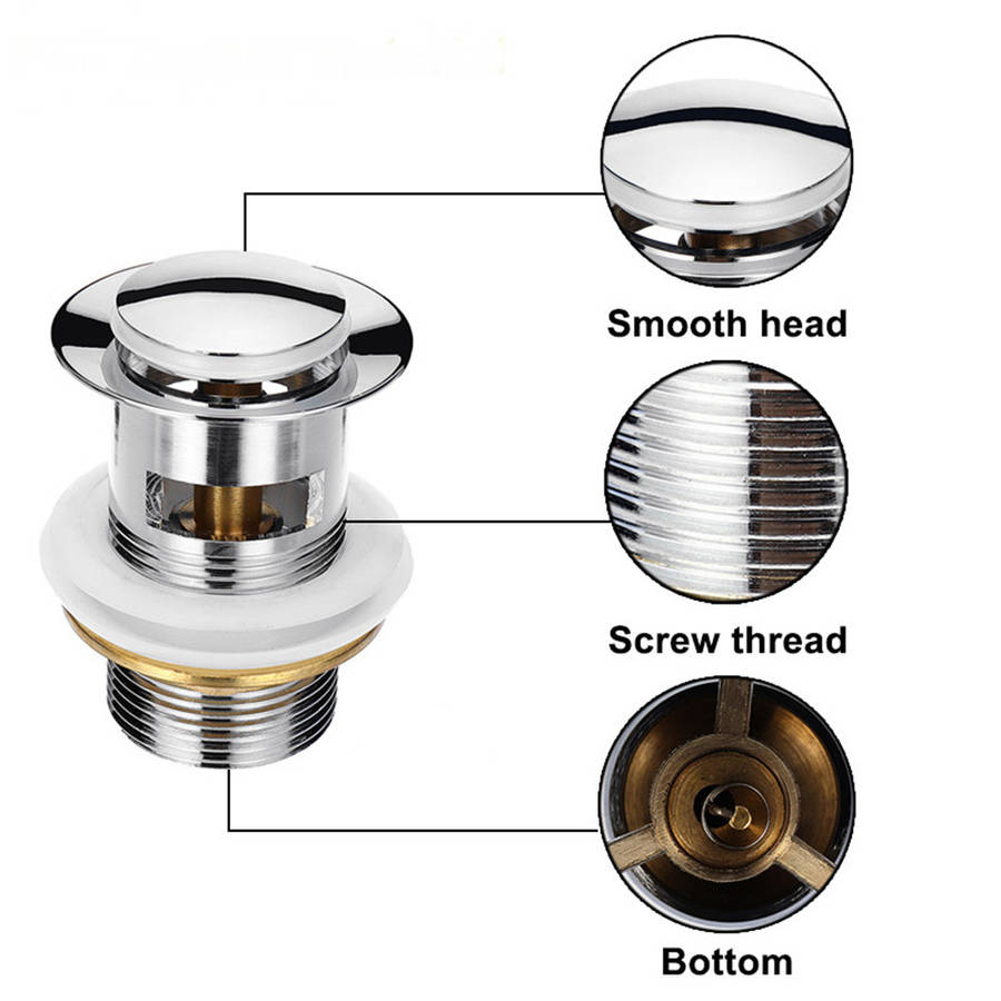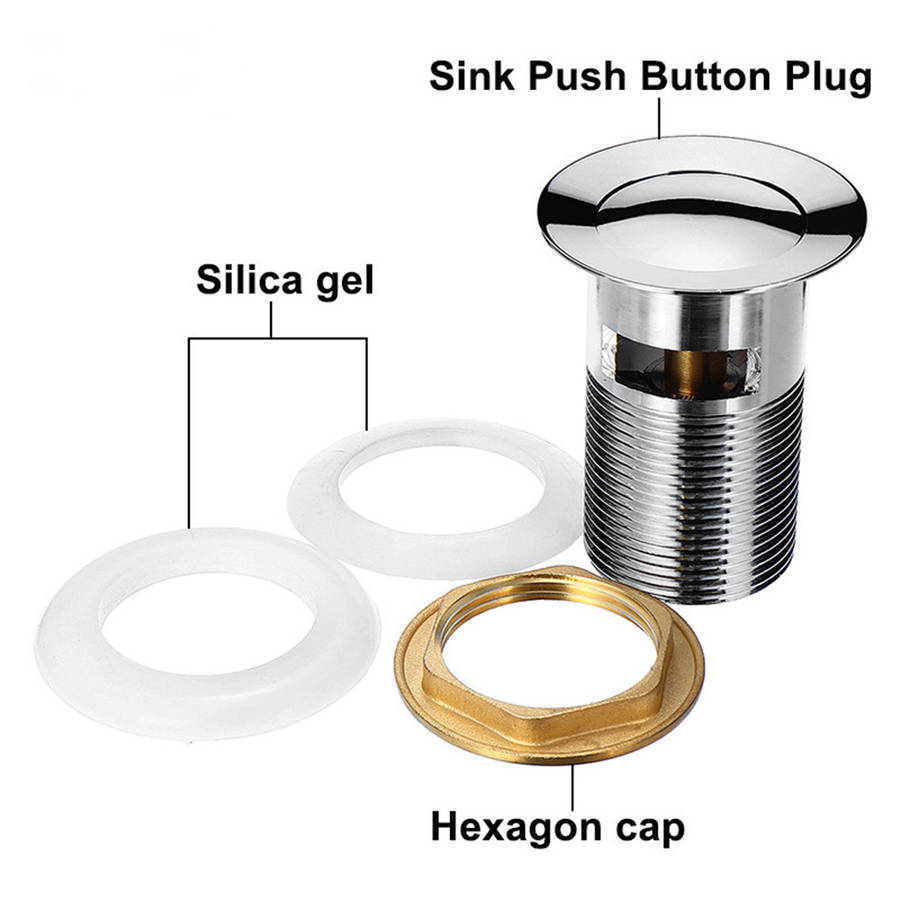 Package Included: 1 x Sink Push Button Plug 2 x Silica gel 1 x Hexagon cap More Details: