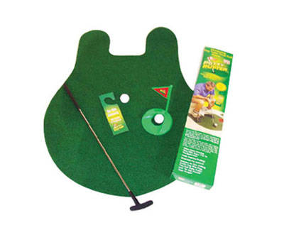 Bathroom golf features a professional carpet found at miniature golf courses. It comes with a "Do Not Disturb" door hanger, 2 golf balls, a cup with a flag, and a putter. Now if you are looking for extra practice time, Bathroom golf is for you. Bathroom golf makes a great gift item for the devoted golfer and for those who are looking to develop their putting.