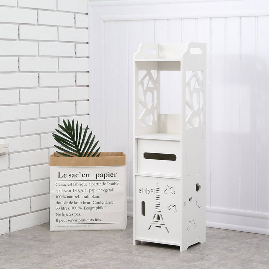 ◆ The pull-out main drawer offers a section that`s large enough for your toilet rolls and keep them dry.