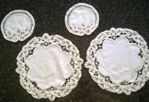 A set of four beautiful table mats or doilies which could be used as placemats and coasters …