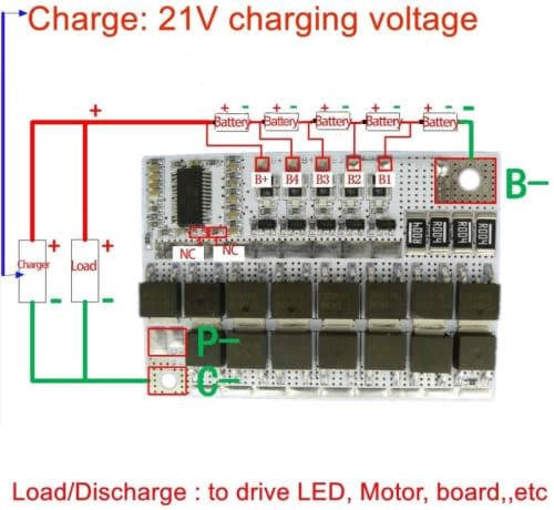 Please note that this module is for 5S Li-ion battery pack and the charging voltage is 21V (4.2V x 5 = 21V)