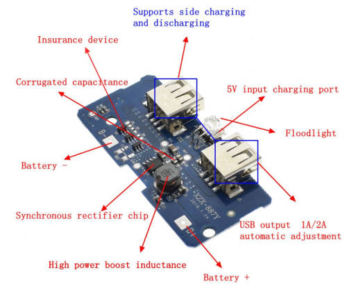 Battery 18650 Power Bank Board USB 5V 1A/2A: