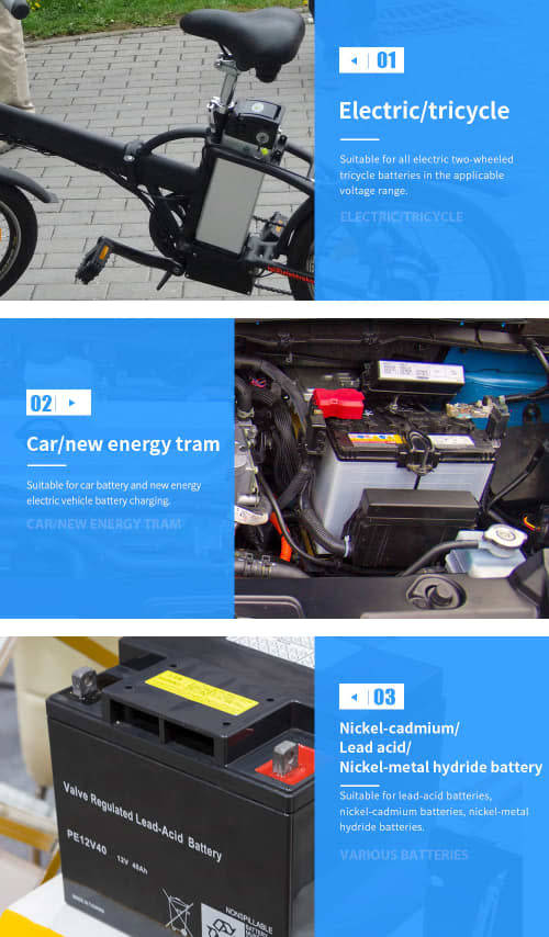 Charging Type: 6 - 120V Storage Battery Charger (Lead acid, Nimh, Nicd, Li-ion)