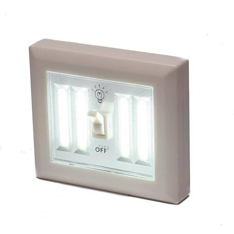 BATTERY OPERATED MOUNTS ANYWHERE WITH NO WIRING. Light switch shaped battery operated night light lamp uses COB LED’s and sticks anywhere. There are three different ways to mount the light. The peel-and-stick adhesive pads attaches securely to most surfaces in seconds, use the magnets to attach to metal surfaces or use the indented mount to hang the light from a nail or hook. No wiring needed. Low voltage lighting for almost any place you need a low powered lamp.