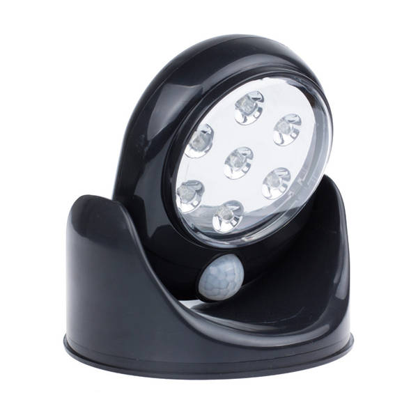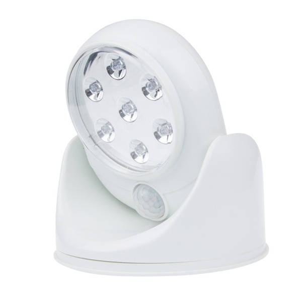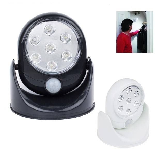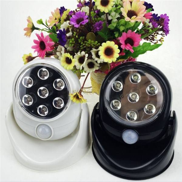 Specification: Sensor: infrared sensor, PIR motion detector Material: ABS Light color: white Shell color:white/black LED quantity: 7 Adjust range:360 degree Power: 4 x AA batteries (not included) Product Size: 13 * 13 * 15 cm