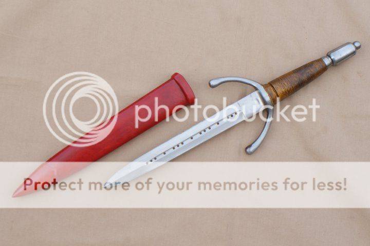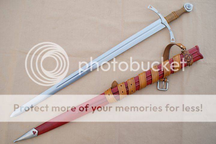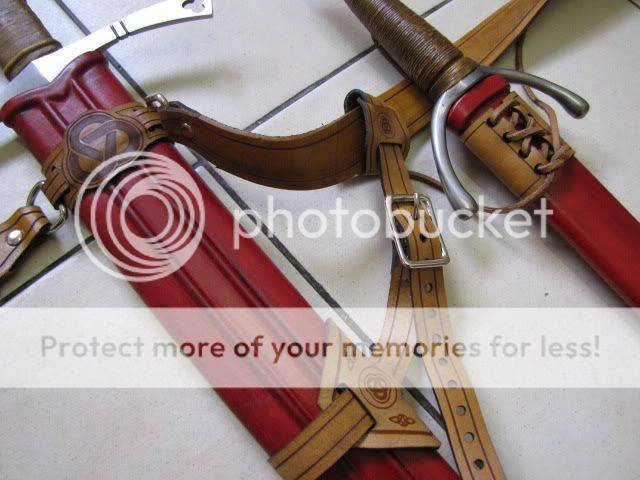 This premium set consists of a sword with a 5160 blade and a dagger .Both items have a premium wood core ,lined scabbards that have premium leather work and some really nice embossing and detailing .A stunning set that comes with a matching belt and frog for the dagger .