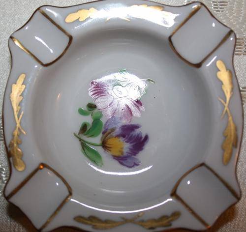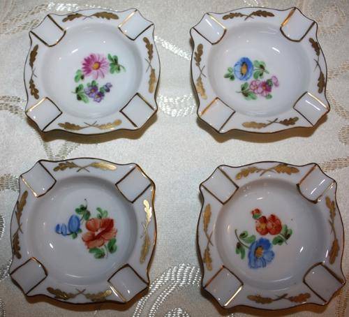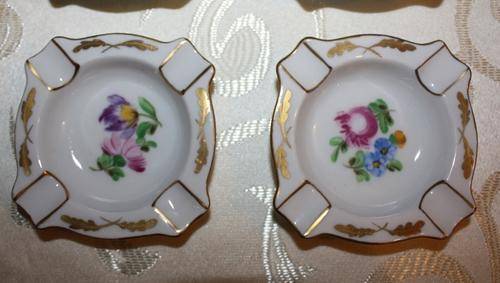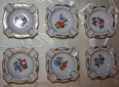 A beautiful set of 6 miniature ashtrays with floral patterns and gold gilding. In excellent condition. Measures approx 7cm across.