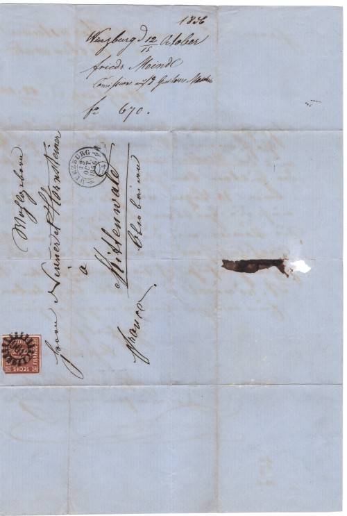 Entire from Bavaria sent in 1856. See scans of front and back.