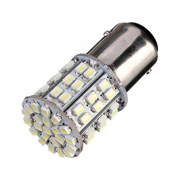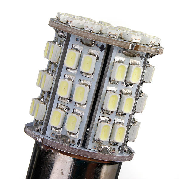BAY15D 1157 White Car Tail Stop Brake Light Super Bright 64 SMD LED Bulb Features: 100% Brand new & high qualtiy Can be used as turn signal light, corner light, parking light, brake light, side marker light, tail light, and back up lights High performance LED, long lifespan, superior illumination & stability Specification: Volts: 12V DC Wattage: 1.7W/per bulb Lumen: 4-6lm/SMD LED Port: 1157 Bay15d LED Color: Pure White LED Type: 1206 SMD, Each LED has 64 SMD in total. Degree: 360° Color Temperature: 6000-8000K Installation: Professional installation is highly recommended (No instruction included) Note: When using LED bulbs for turn signal, you will need to use load resistor or decoder set to prevent hyper flash or bulb malfunction. Package Included: 1 X 1157 64-SMD LED Car Light Bulb