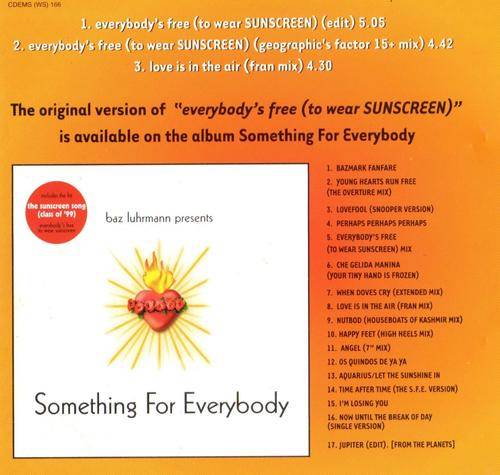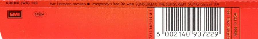 Baz Luhrmann - Everybody's Free (To Wear Sunscreen) - The Sunscreen Song (Class Of '99)(CD Single)
