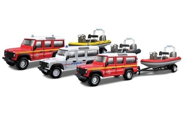 BBURAGO 1/24 LAND ROVER WITH TRAILER AND BOAT