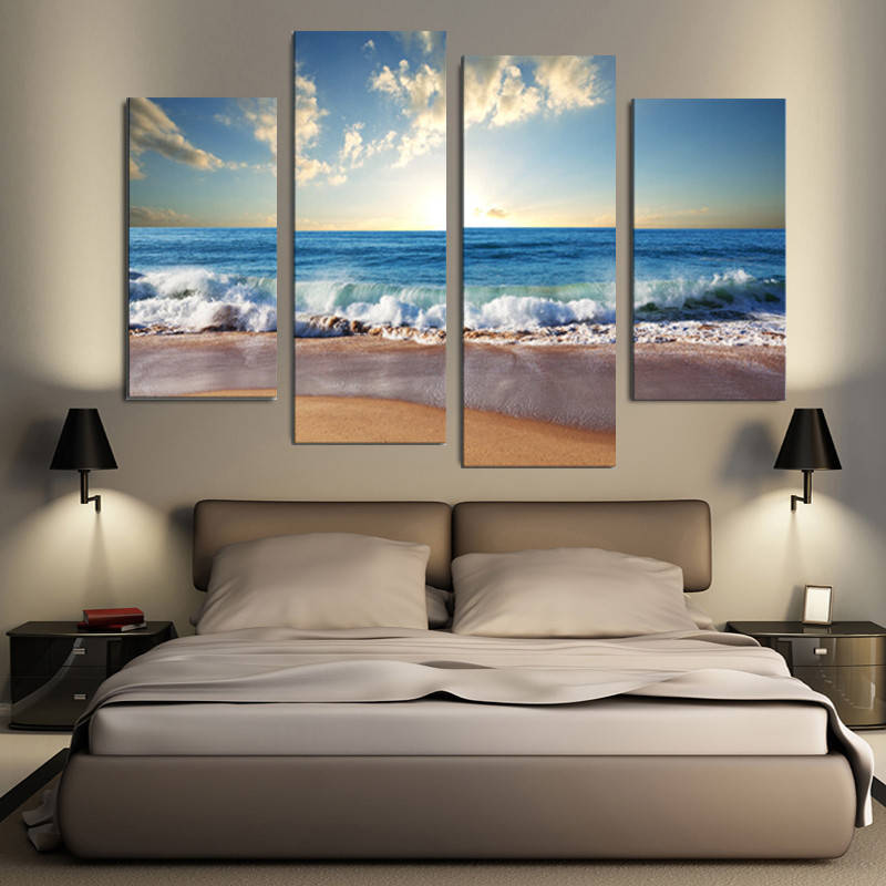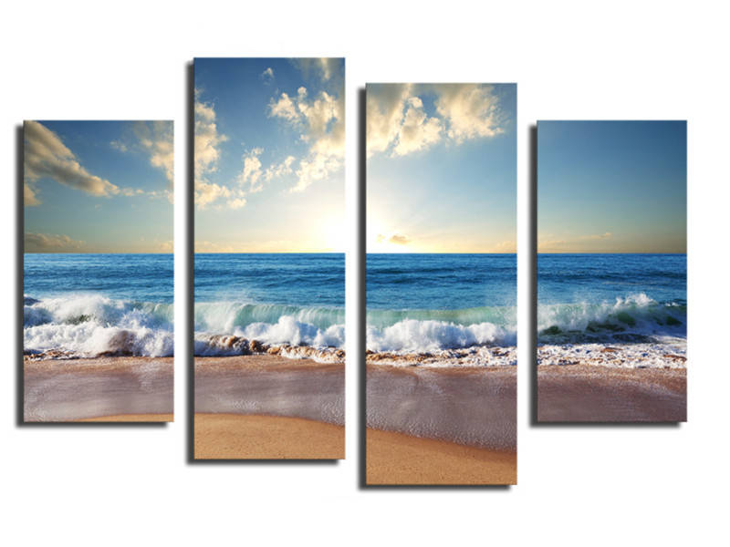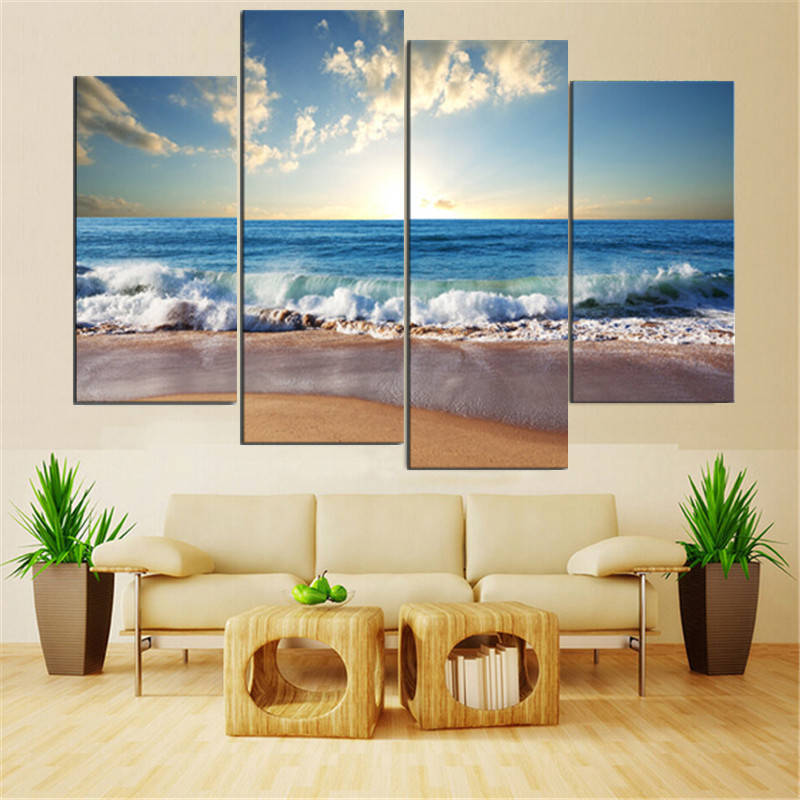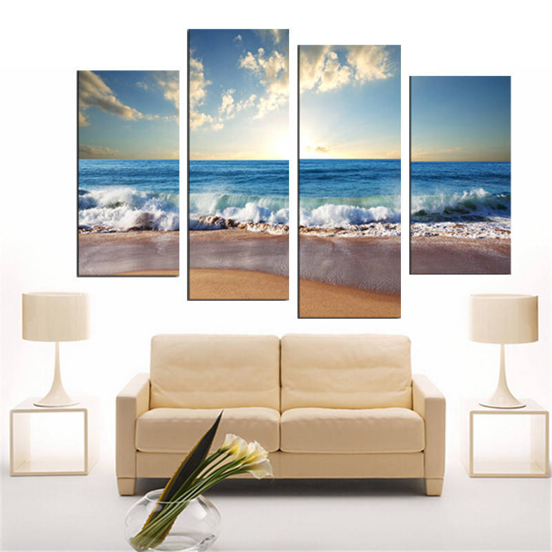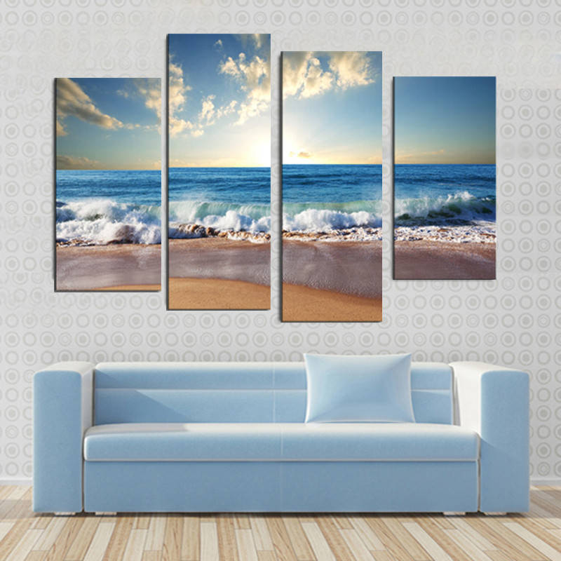 Beach Seascape 4Pcs Combination Painting Printed On Canvas Frameless Drawing Home Wall Decor