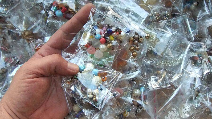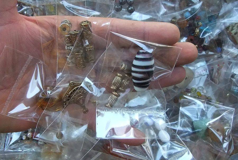 What kind of beads you ask ? Art glass beads , faceted glass beads , molded glass beads , Italian glass beads , Acrylic beads , Wooden beads , Plastic beads , big beads , small beads , spacers , Metal beads , Plastic beads , Brass beads , Pottery beads , Hematite beads , Ceramic beads , Gemstone beads , bits of coral here and there , Turquoise looking beads , Metal alloy beads , Faux Pearl beads ( plastic and glass ) ,Decorative beads and more ....