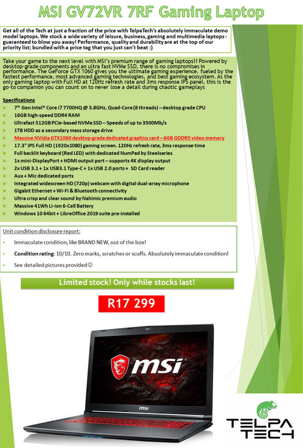 ** ALL DEMO LAPTOPS COME WITH THE REMAINDER OF MANUFACTURERS WARRANTY (IF APPLICABLE), PLUS A 12 MONTH (1 YEAR) HARDWARE FAILURE WARRANTY FROM US FROM DATE OF PURCHASE, FULFILLED BY OUR AFFILIATE TECHNICAL EXPERTS. IF WE ARE UNABLE TO REPAIR OR REPLACE YOUR UNIT, A FULL REFUND WILL BE GIVEN.
