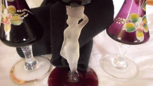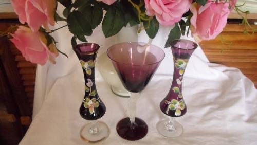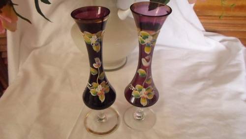 BEAUTIFUL SET OF 2 GLASS VENETIAN EMBOSSED FLORAL VASES