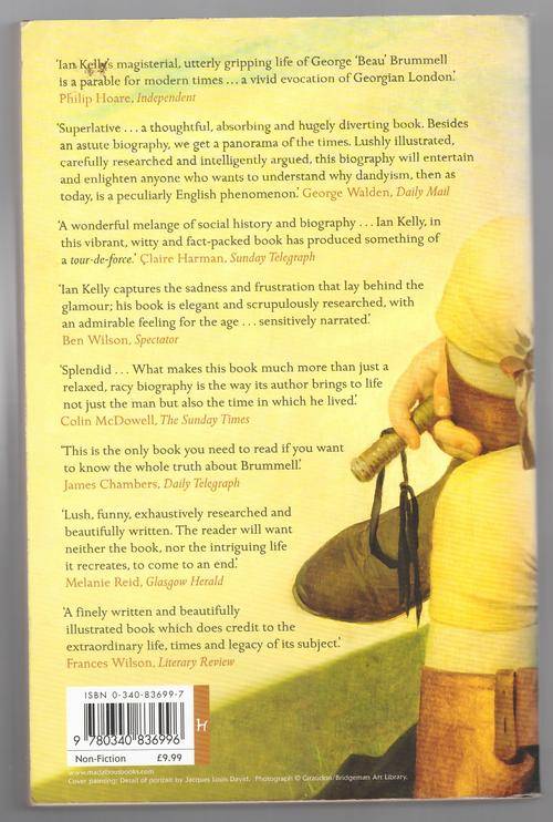 If people turn to look at you in the street, you are not well dressed, but either too stiff, too tight, or too fashionable. -- Beau Brummell Long before tabloids and television, Beau Brummell was the first person famous for being famous, the male socialite of his time, the first metrosexual -- 200 years before the word was conceived. His name has become synonymous with wit, profligacy, fine tailoring, and fashion. A style pundit, Brummell was singly responsible for changing forever the way men dress -- inventing, in effect, the suit. Brummell cut a dramatic swath through British society, from his early years as a favorite of the Prince of Wales and an arbiter of taste in the Age of Elegance, to his precipitous fall into poverty, incarceration, and madness. Brummell created the blueprint for celebrity crash and burn, falling dramatically out of favor and spending his last years in a hellish asylum. For nearly two decades, Brummell ruled over the tastes and pursuits of the well heeled and influential, and for almost as long, lived in penury and exile. With vivid prose, critically acclaimed biographer Ian Kelly unlocks the glittering, turbulent world of late-eighteenth/early-nineteenth-century London -- the first truly modern metropolis: venal, fashion-and-celebrity obsessed, self-centered and self-doubting -- through the life of one of its greatest heroes and most tragic victims. Brummell personified London's West End, where a new style of masculinity and modern men's fashion were first defined. Brummell was the leading Casanova and elusive bachelor of his time, appealing to both men and women of his society. The man Lord Byron once claimed was more important than Napoleon, Brummell wasthe ultimate cosmopolitan man. Toyboy to Georgiana, Duchess of Devonshire, and leader of playboys including the eventual king of England, Brummell inspired Pushkin to write Eugene Onegin, and Byron to write Don Juan, and he influenced others from Oscar Wilde to Coco Chanel. Through love letters, historical records, and poems, Kelly reveals the man inside the suit, unlocking the scandalous behavior of London's high society while illuminating Brummell's enigmatic life in the colorful, tumultuous West End. A rare rendering of an era filled with excess, scandal, promiscuity, opulence, and luxury, Beau Brummell is the first comprehensive view of an elegant and ultimately tragic figure whose influence continues to this day.