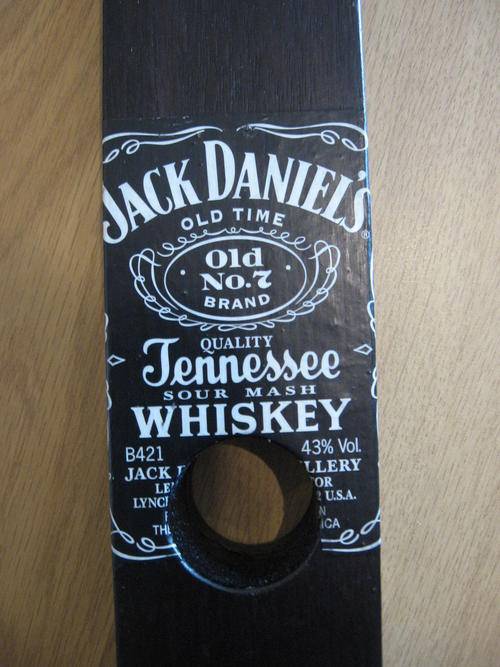 HANDCRAFTED WOODEN JACK DANIELS STAND ONLY WHICH BALANCES ONCE IT HAS A FULL BOTTLE OF JACK DANIELS IN IT- ONE OF A KIND AS THIS WAS MADE AS A SPECIAL REQUEST AND IS NOT MASSED PRODUCED