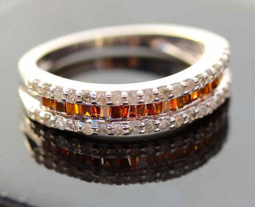 BEAUTIFUL 0,50 carat WHITE DIAMOND & RED DIAMOND RING IN 9ct WHITE GOLD FROM ENGLAND