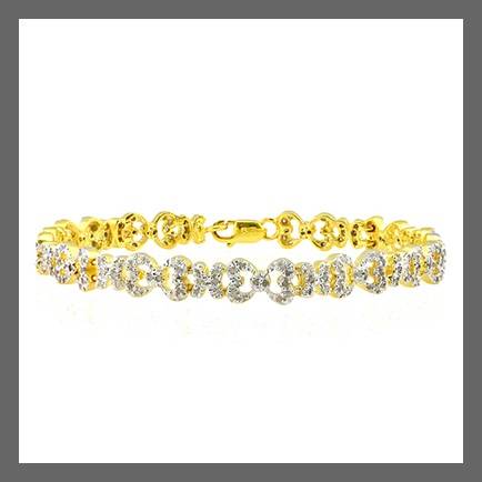 BEAUTIFUL 0 .925 STERLING SILVER BRACELET W/ 14ct GOLD/ AND 198 ROUND DIAMONDS 1.48 CT