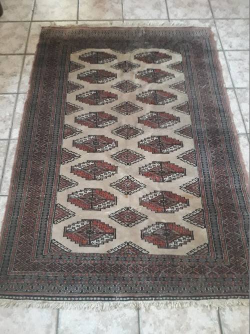 BEAUTIFUL HAND WOVEN BOHARA PERSIAN CARPET, 1820 X 1240 MM, THERE IS MINIMAL AGE RELATED WEAR TO THE SIDE EDGES OF THE CARPET, BUT THE FRINGE IS FINE AND THE SURFACE IS STUNNINGLY SMOOTH AND SOFT.