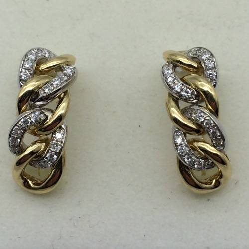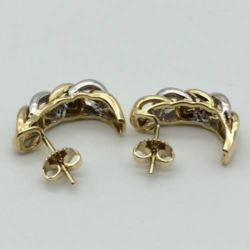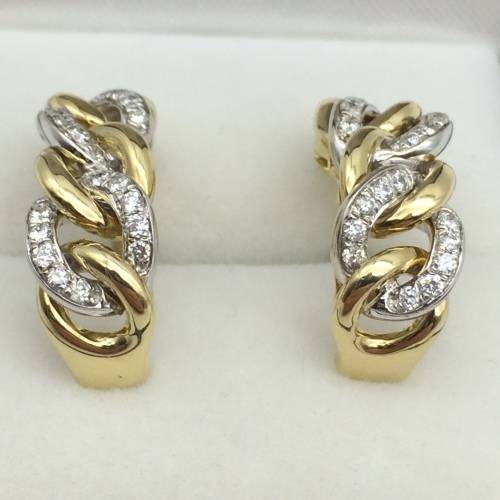 This lovely pair of plaited linked earrings were manufactured by Browns Jewellers from 18ct yellow and white gold and are set with 40 brilliant cut diamonds = 0.20ct G/H VS1/VS2. They are stamped 750 Browns and weigh 7.59g. They are in excellent condition