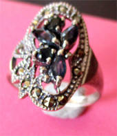 Beautiful 925- Sterling Silver, Marcasite & Genuine Blue Sapphires Ring.