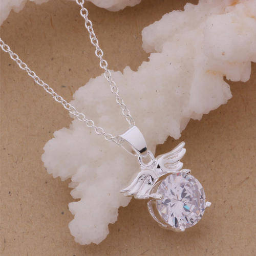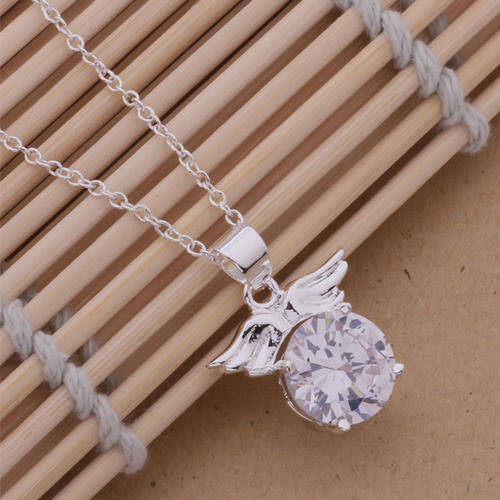 Beautiful 925 Sterling silver plated Angel wings cz pendant and necklace